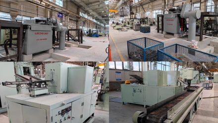 生產(chǎn)線(xiàn)組件:感應熔煉爐; 鋁合金壓鑄設備; 感應加熱爐; 鋁合金鍛造設備; 冷卻機; 集塵器;?